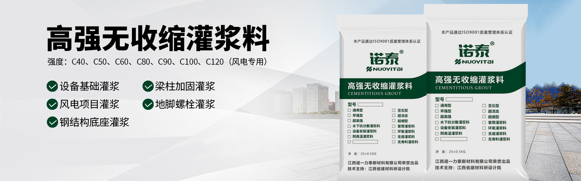 江西諾一力泰新材料有限公司位于江西宜春奉新縣,是專業從事灌漿料、水泥路面修補砂漿、抗裂砂漿、防水砂漿保溫砂漿、隔聲砂漿、粘結砂漿等砂漿系列產品生產銷售的廠家。